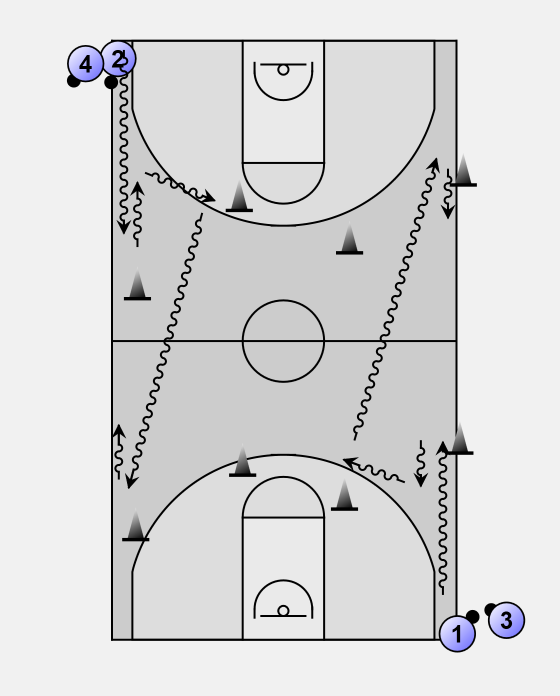 A full court dribble drill to practice 'backing up'