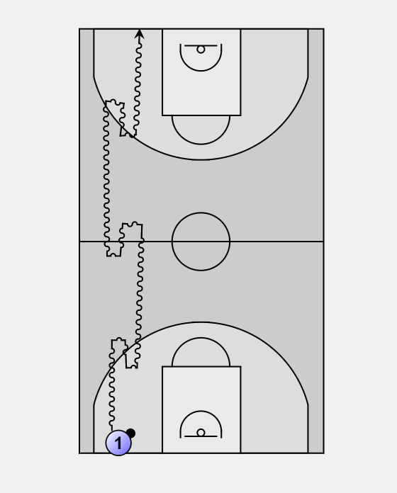 On the free throw line, 1/2 court line, far free throw line do the following jobs:
