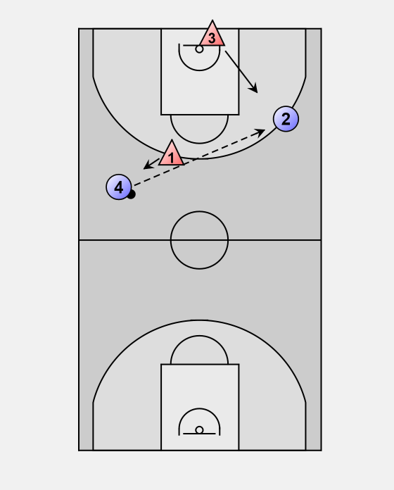 On the pass from 1 to 2, 1, 3 & 4 start breaking down the court.
