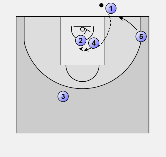 1 plays over the defense to 4 for the quick shot.