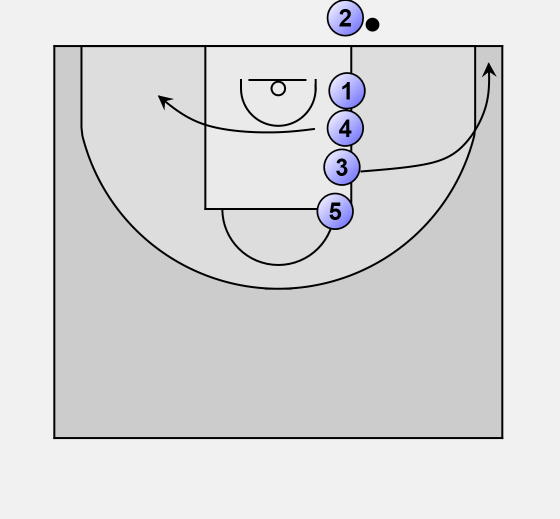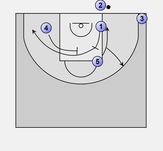 1 sets a screen for 5 who, depending on defense position 5 goes to the baseline or steps out.