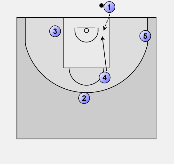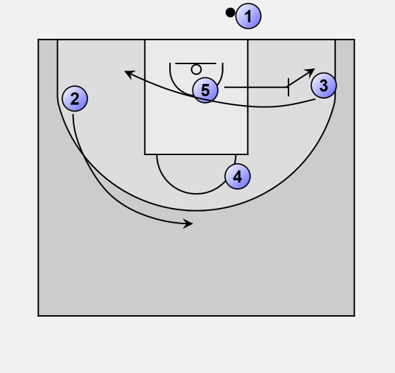 5 sets a baseline screen for 3, who cuts to the other side.