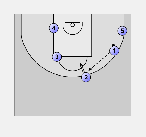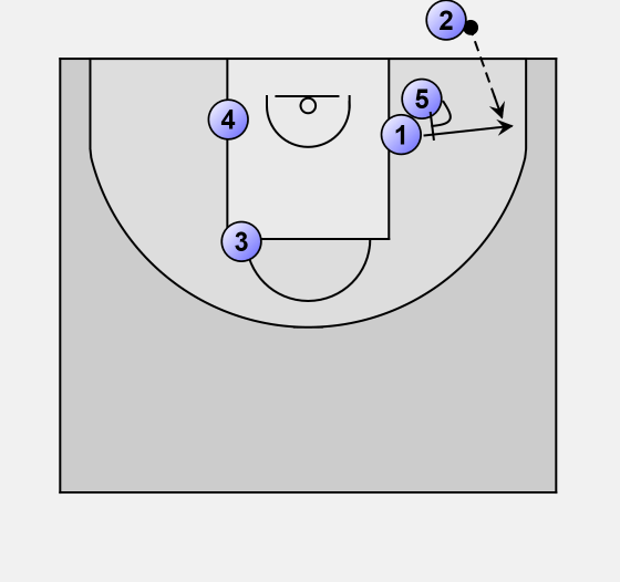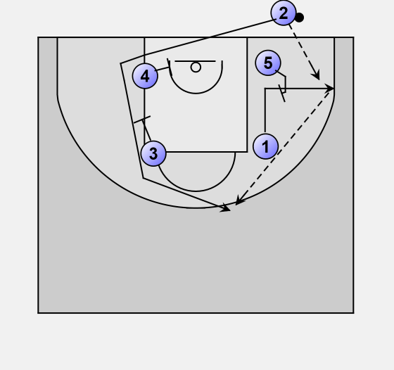 When #2 is open guard #1 passes the ball for an open 3 pointer.