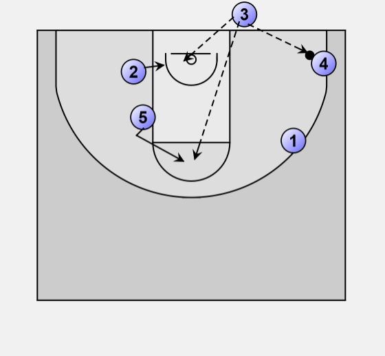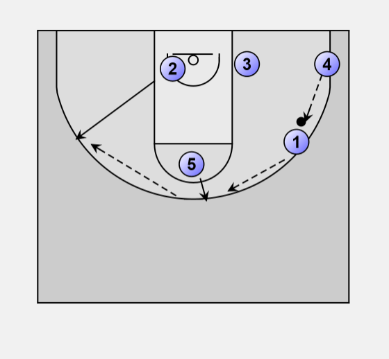 In this case the ball goes to 4 who starts to swing the ball by passing to 1.