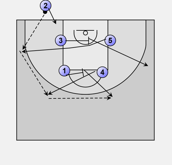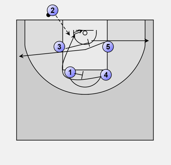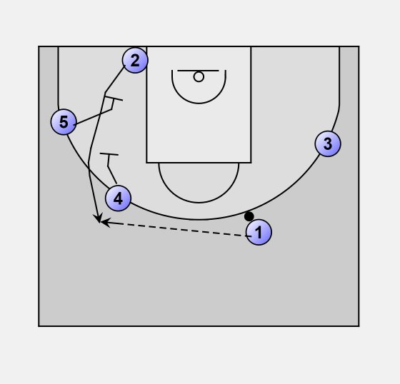 5 and 4 set a stagged screen to get 2 free for the 3-pointer.