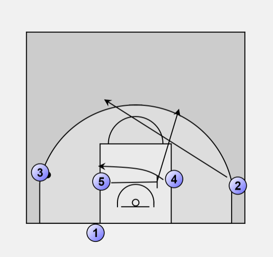 If 2 receives the ball, 4 screens 5 and 3 goes to the guard spot.