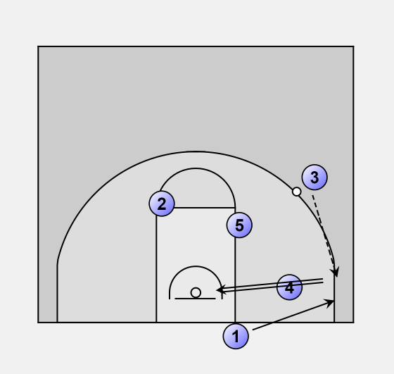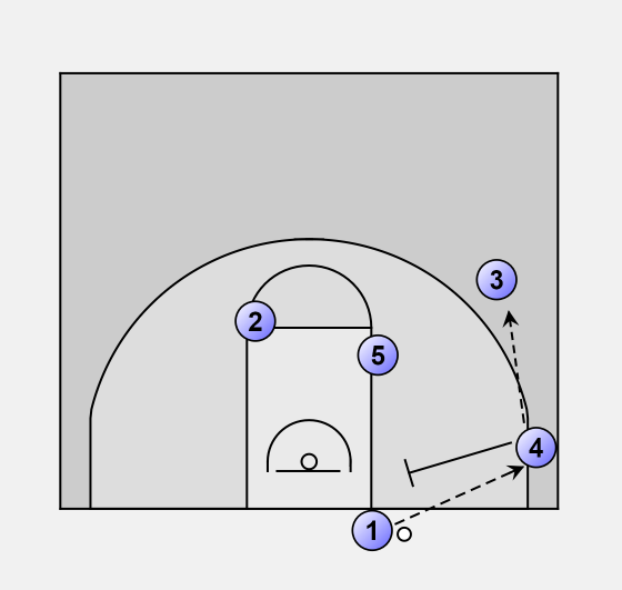 1 uses the screen of 4 to get free for a 3-point shot.