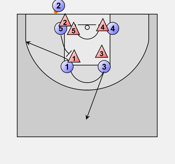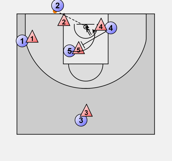 In this case defenders 4 and 5 have switched, 4 roles (pick & roll) to the basket and receives the ball from 2.