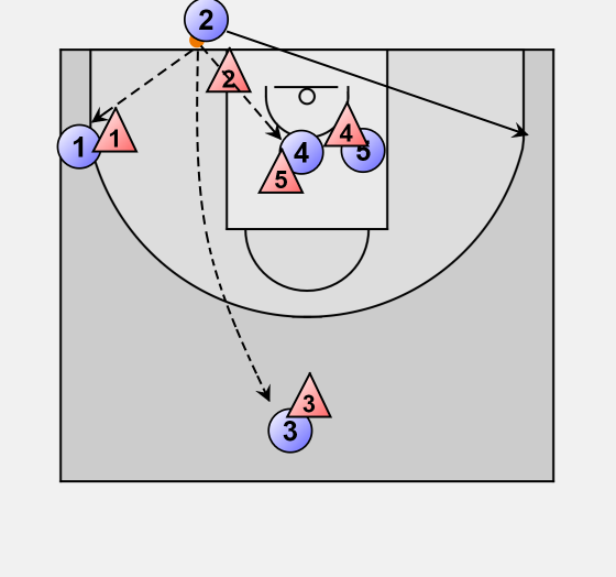 After passing the ball 2 goes to the other side of the court to reset the offense.