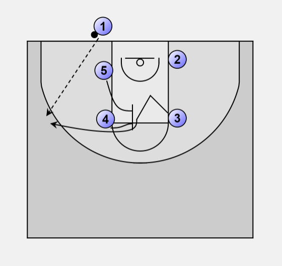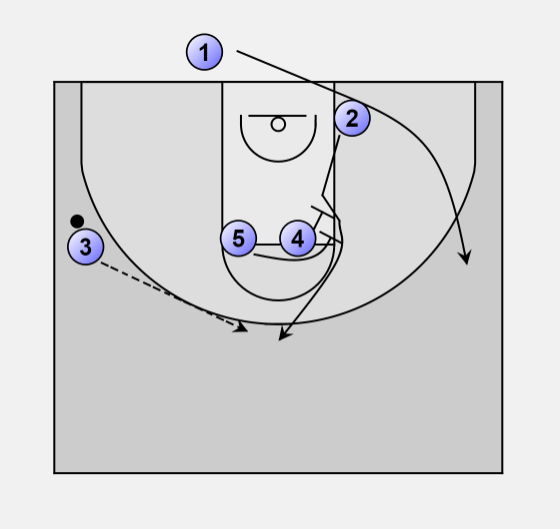 3 first cuts to the basket setting, so his defender will bump into to the double screen when 3 continues to the top.