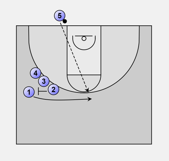 2 sets a screen for 1, if 1 is free on the top he will get the ball for the 3-point shot.