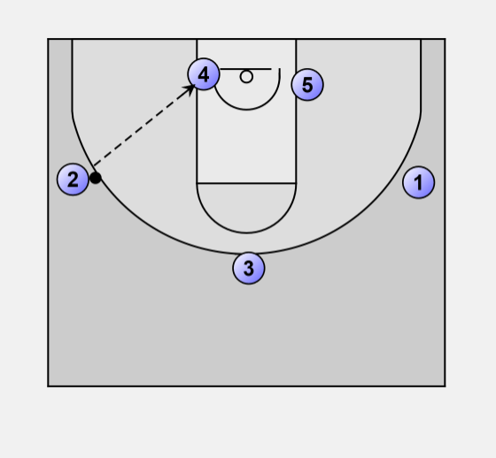 2 looks for a quick Post-Up play to 5 first.