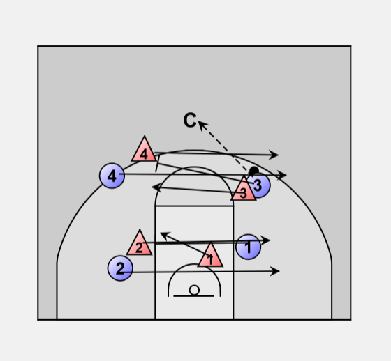 This drill gives the game like movement for the defense to read screens, and know how to beat or cheat the screen.