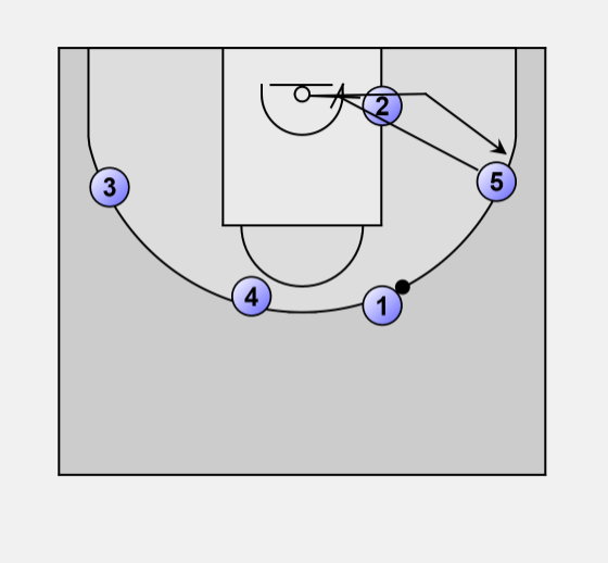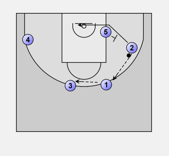 When the 3 passes to the 2, the 1 makes a cut to the basket and then up screens 5.