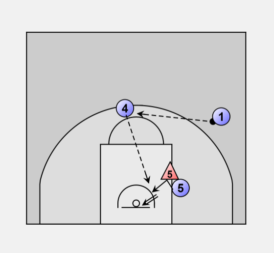 Defender 5 is overplaying the low post. No pass possible.