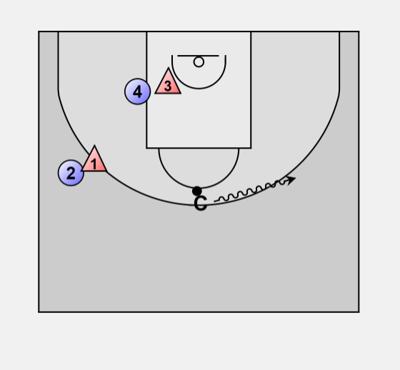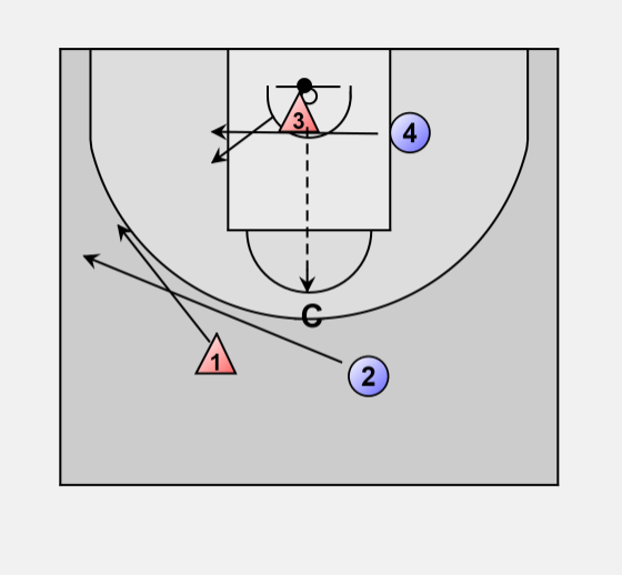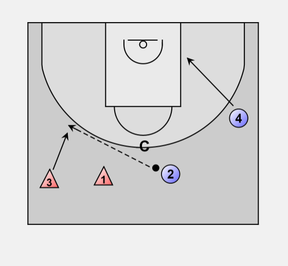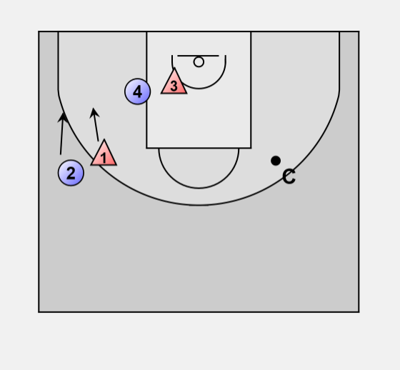 2 uses the block (1 uses the proposed defensive technic proposed by the trainer with or without the aid of 3, to prevent the pass of the coach).