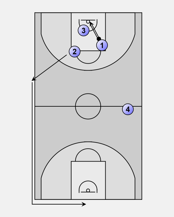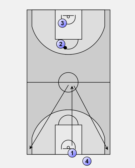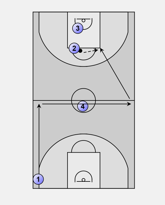 Here he sprints to the bucket and receives a pass from player 2.