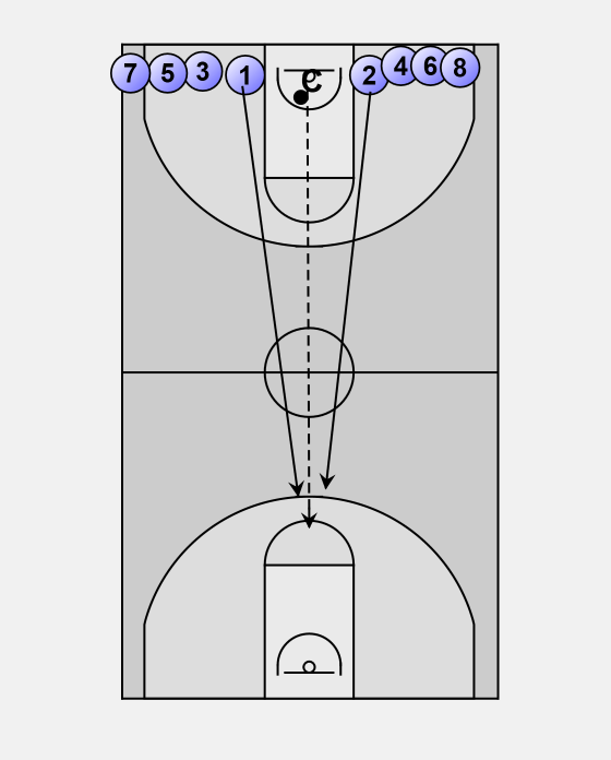 The coach stands under the basket and has his team break into two lines (one on each side).