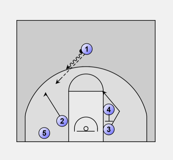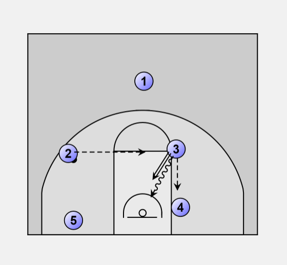 2) 3 can dribble to the basket for layup or look to pass to 4 off the dribble or to 2 for a jump shot.