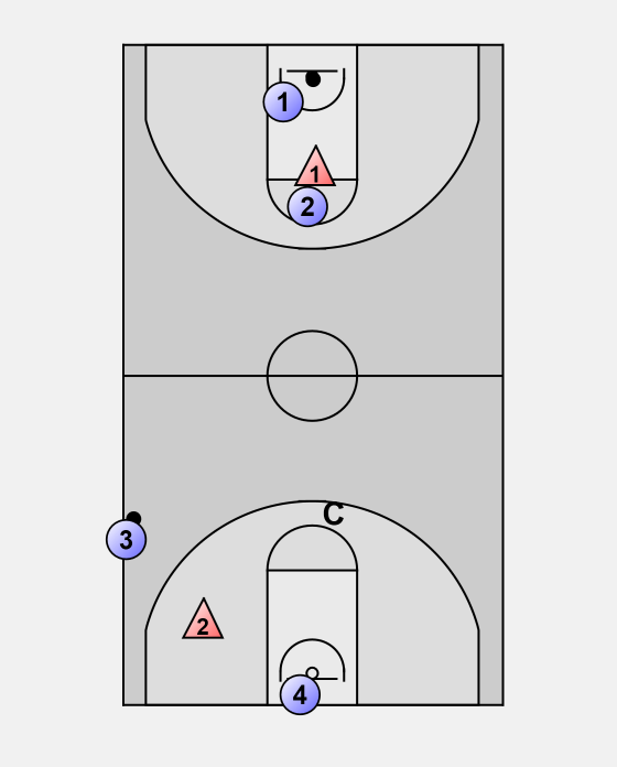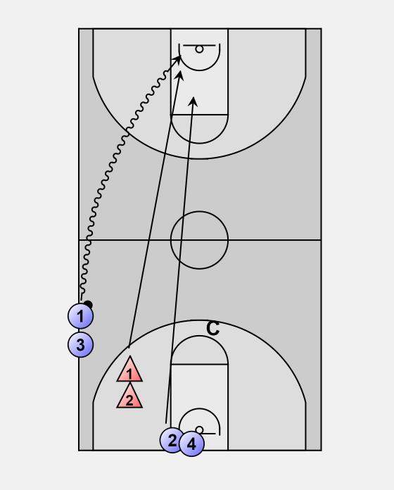 2) Player 2 can throw a pass to 1 who is releasing for a layup.