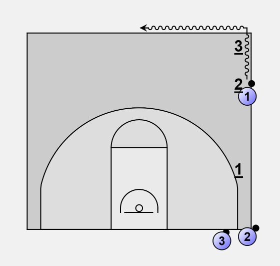 3. The drill should also be performed beginning on the left side of the court, starting with the ball in the left hand, so that moves can be perfected with either hand.