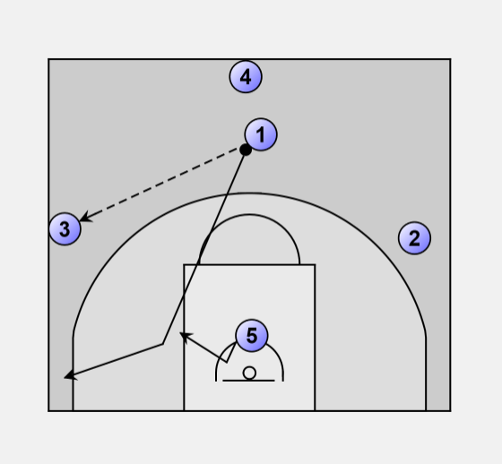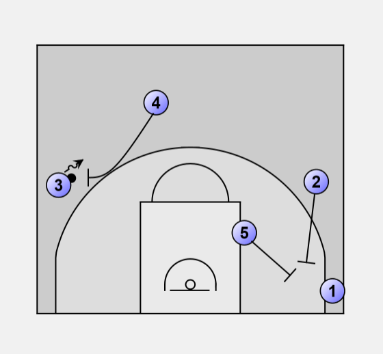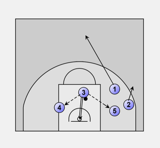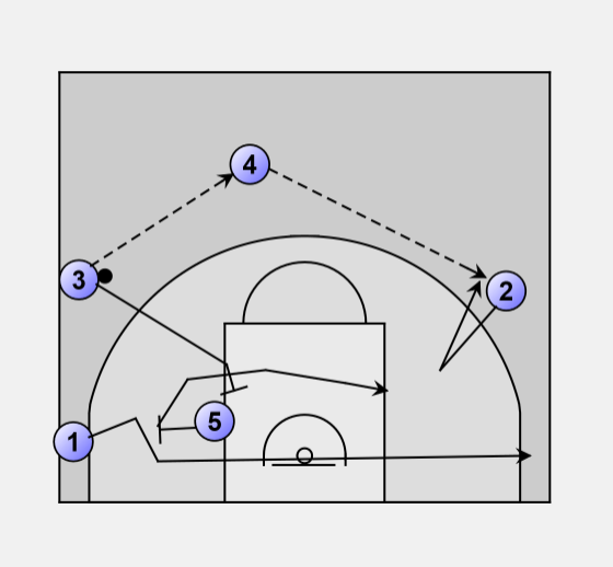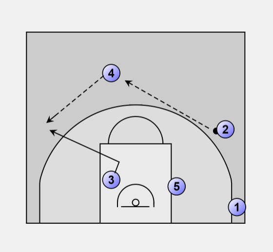 2 and 5 hold position until the ball hits the floor on the drive by 3.