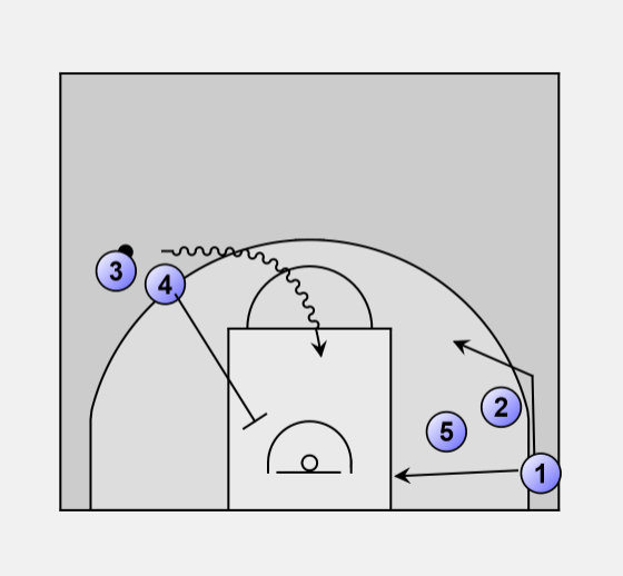 On the trigger pass to the trailer, the corner player flex cuts off to the basket, then the corner.