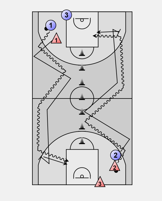 • Place cones or chairs down the middle of the floor on the split-line, free-throw line to free-throw line.