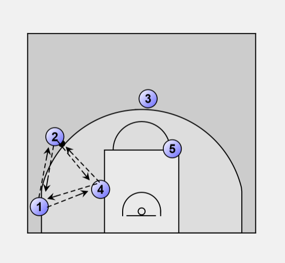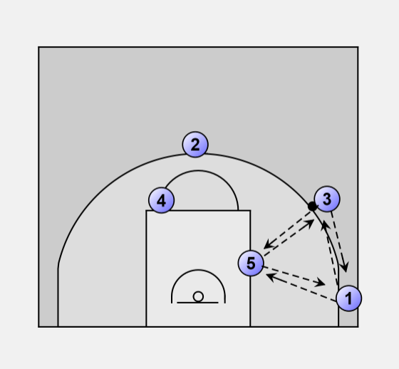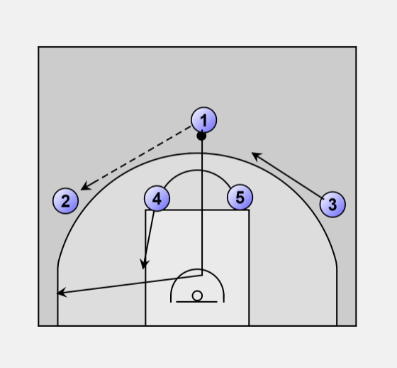 When ball is passed from 2 - 3, 1 runs the baseline to deep corner.