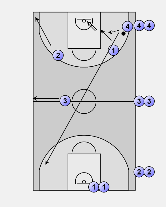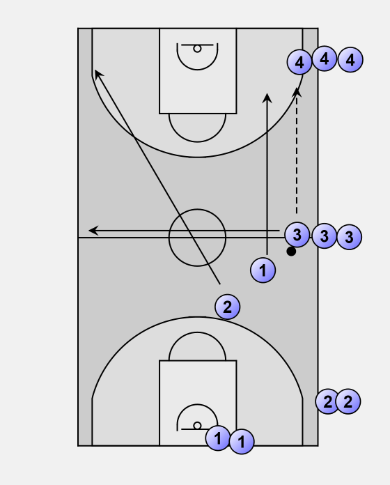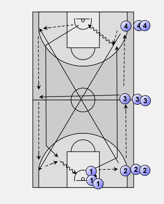 You can either let players 2,3 and 4 cross again or perform the drill in the other direction.