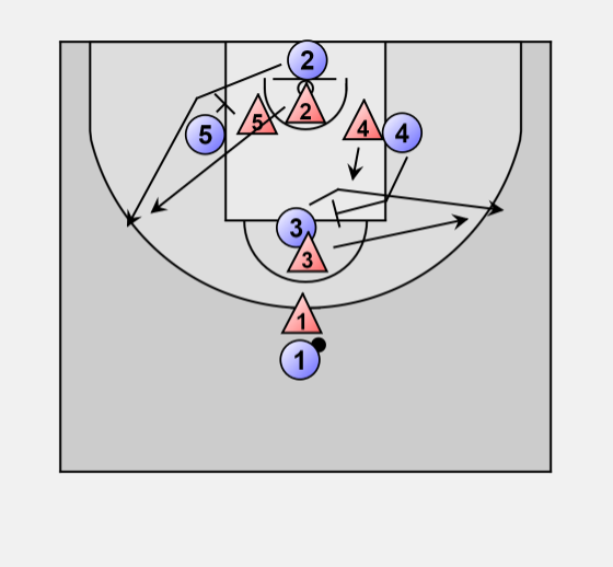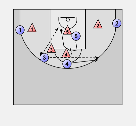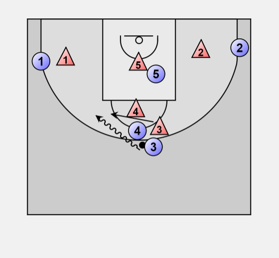 4 sets a "weak" screen for 3 who is over played, goal is to get 4 free.