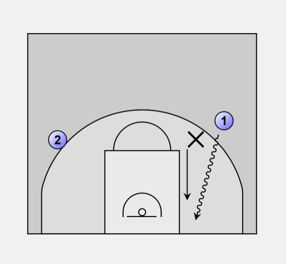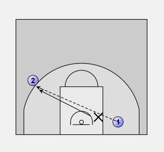 X passes ball to offence. Who dribbles hard at the base line. X must play this tough and not allow middle penetration.