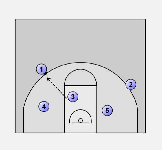 It begins with the Guard bringing the ball up and passing it to the small forward by the free throw line.