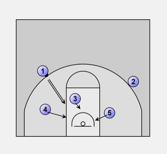 The ball handler moves towards the basket confusing the defense that it is an isolation play. This is when sequence 2 is executed.