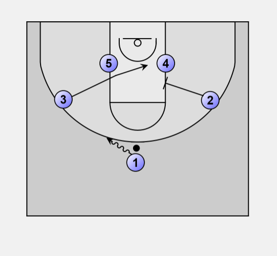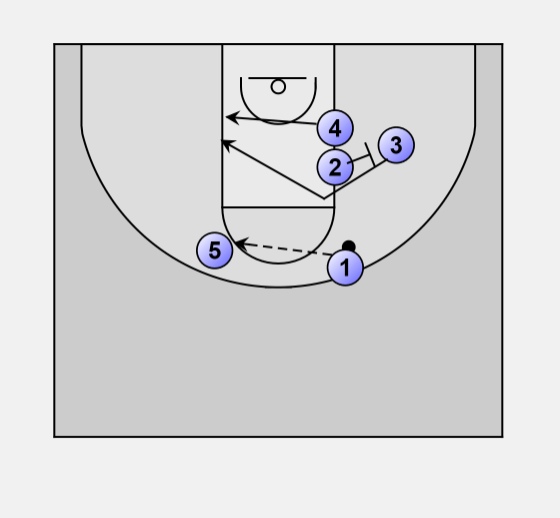 2 then repeats cut below screen looking for pass from 5 and open jump shot behind the screen.
