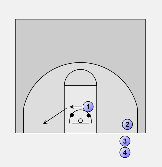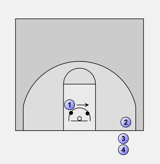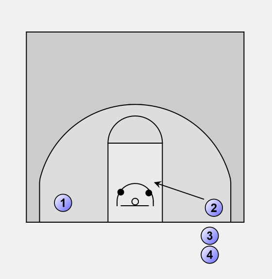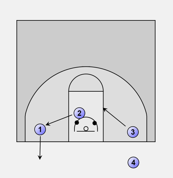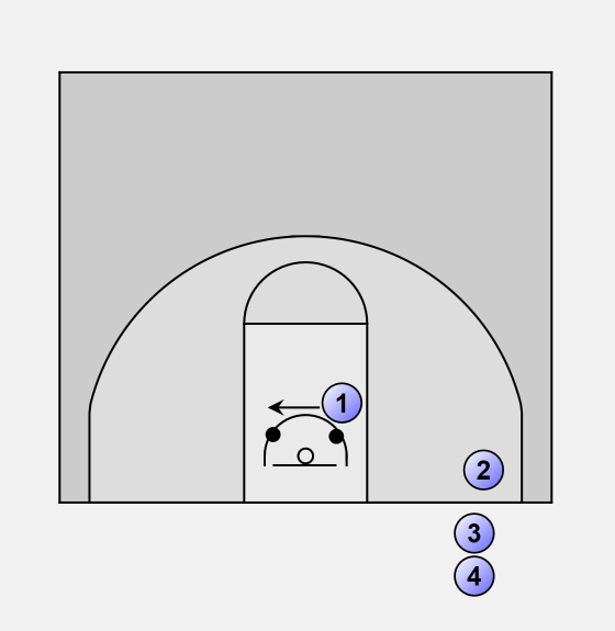 3. On the command by the COACH, Player 1 is to use downlow techniques by using the backboard on every shot.