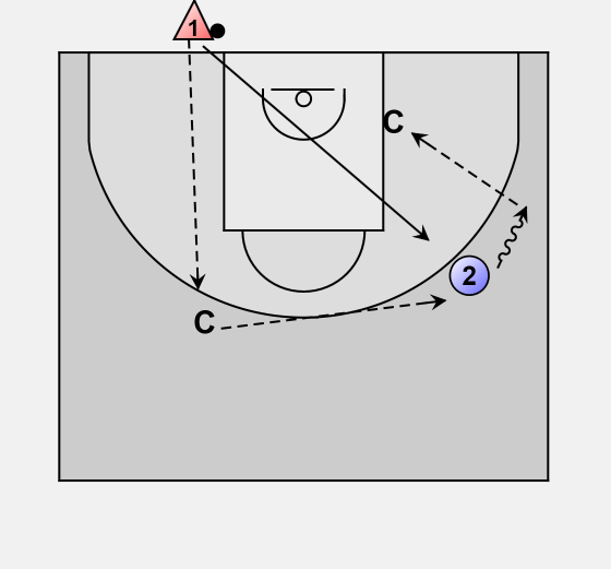 • If the pass is made from the post back to 2, 1 must stop 2 from scoring (force baseline and jam up on the dead ball)