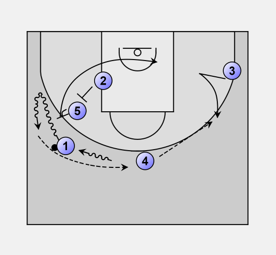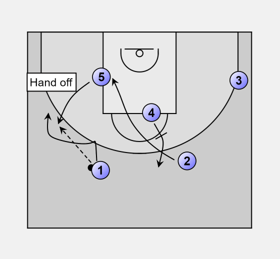 At the same time 4 sets a backscreen for 2 who replaces 5 at the middle post.