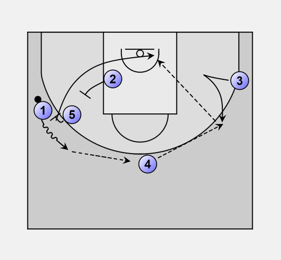 Play can also be played with a dribble entry if 5 doesn't get free for the first pass.