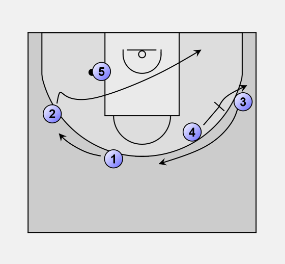 4 sets a screen for 3 to get free on the top.
