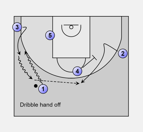 Start with a dribble hand off between 1 and 3.