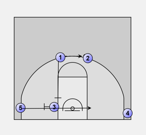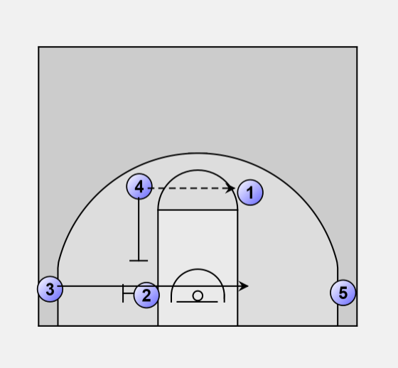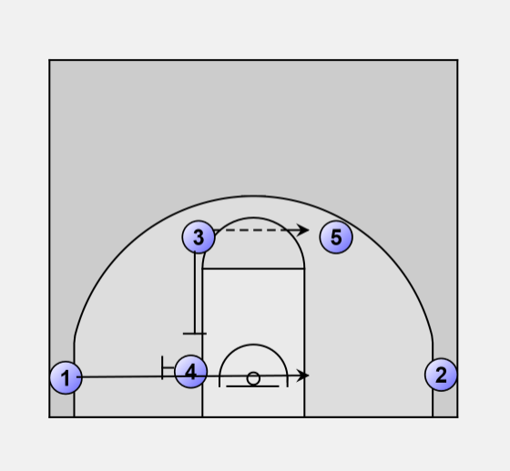 #1 after passing ball to #2 goes and sets a down pick for #3.
