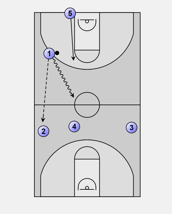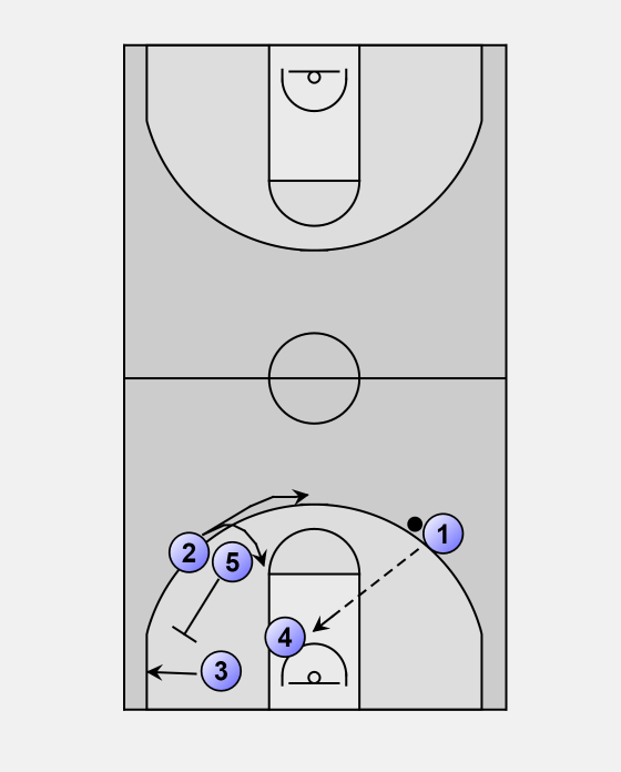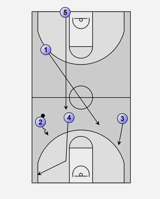 4 will finish his cut to the rim and then sprint to play inside pick-and-roll with 1.