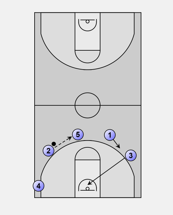 3, 5, and 2 will space wide for a possible kick-out three off of the penetration by 1.