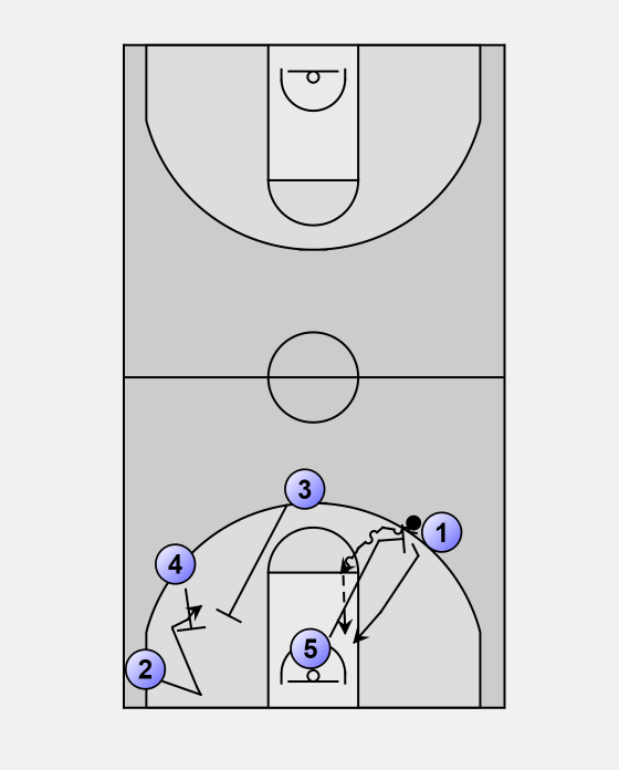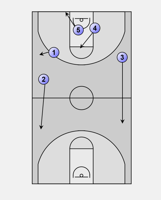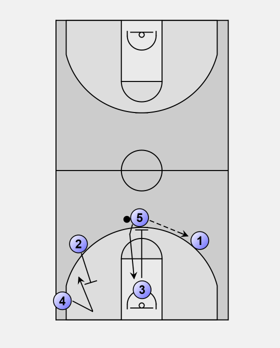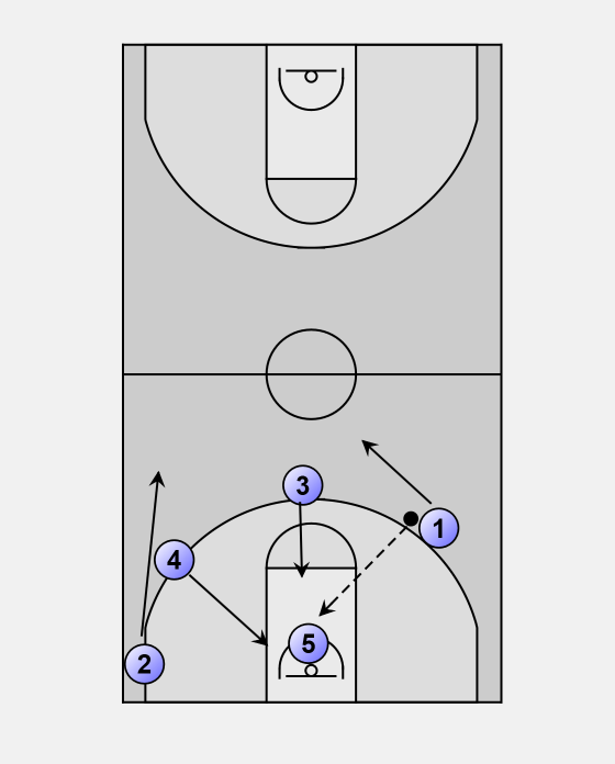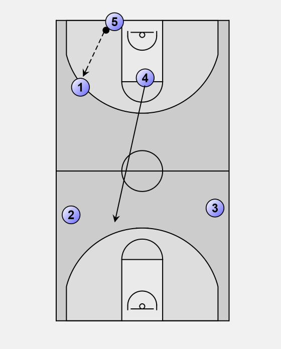 5 will finish his cut to the rim and then sprint to play inside pick-and -roll with 1.