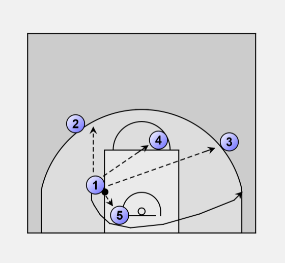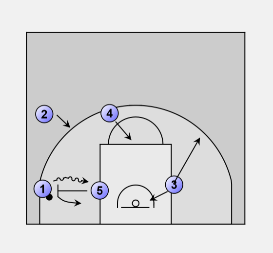 1. Ball screen #5t for #1. #1 drive over left, #5 curl baseline.