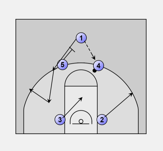 5 screens for 1 (attacking empty area on weak side - if not on wing).