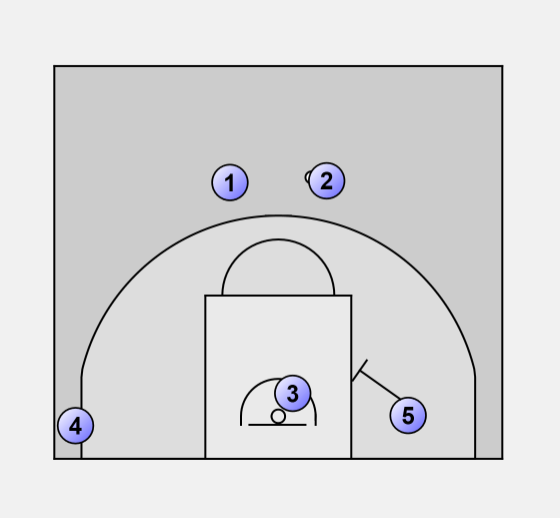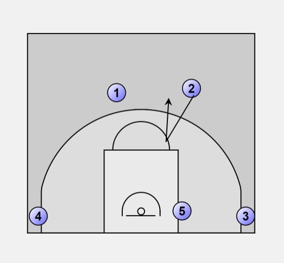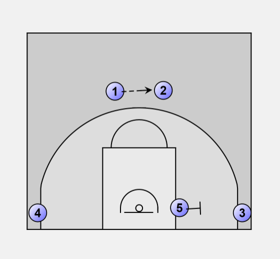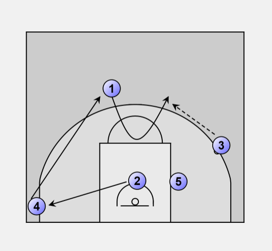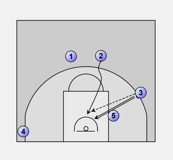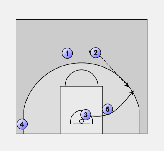 Guard to guard pass, 5 moves into position to screen 3.