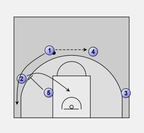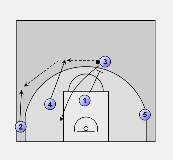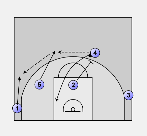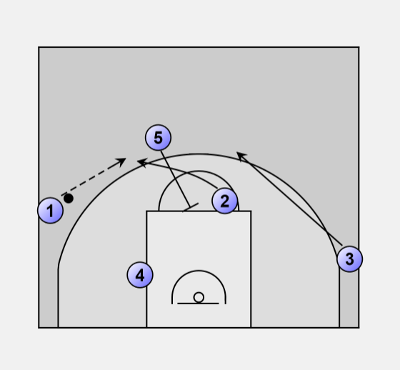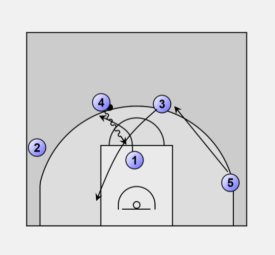 1 passes to 4 and the cuts around 3-pt line to the corner.