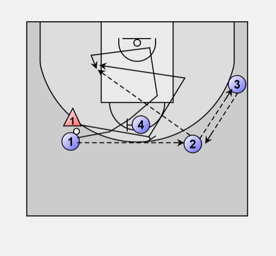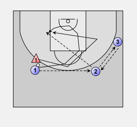 When O2 gives the skippass to O1, the defender sprint to O1 does a close out and defends man to man defense.